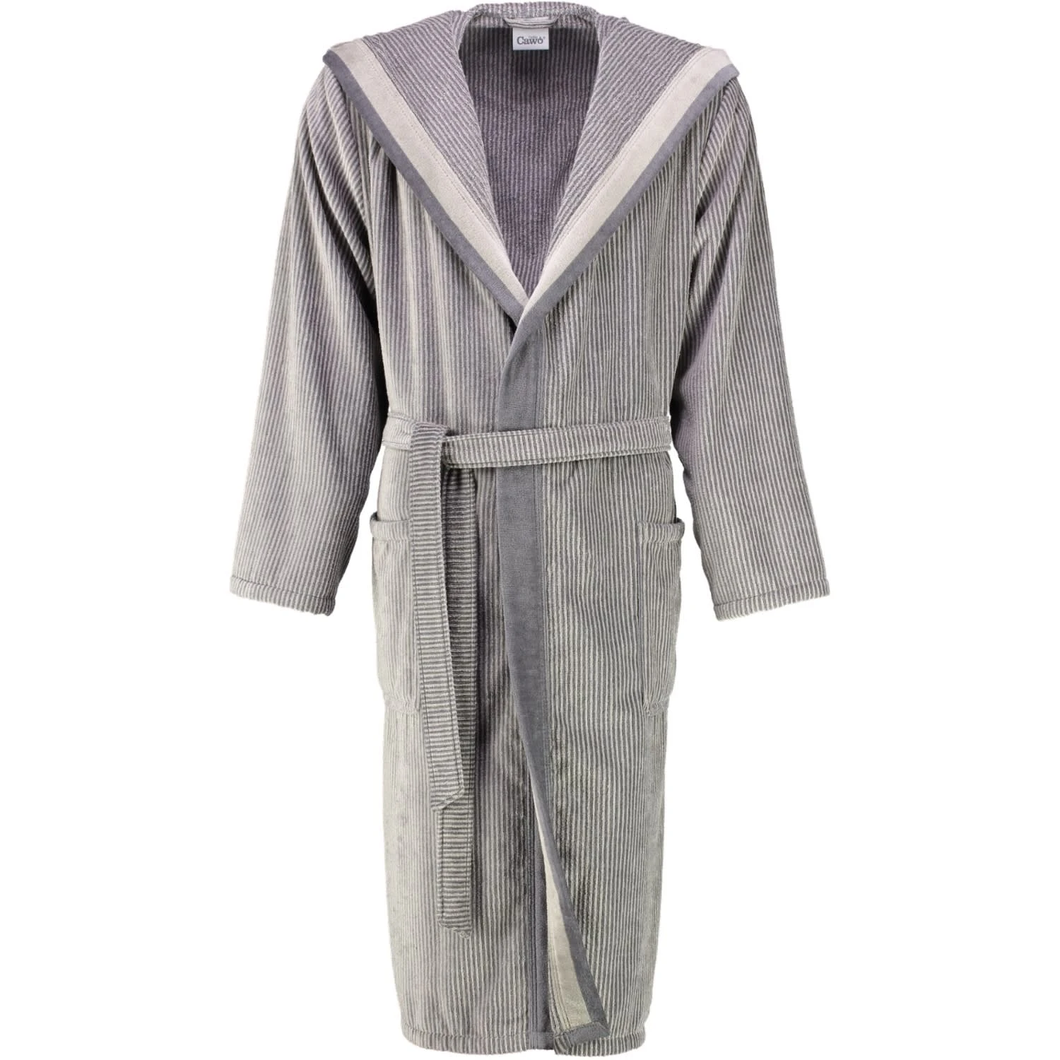 Dieser Herren-Veloursmantel mit Kapuze von Cawö in Streifen-Optik bietet edle Qualität in 100% Baumwolle. Cawö – Unsere Premium-Frottier-Marke für höchste Ansprüche. Überzeugend durch Qualität, modische Aussage und ein hervorragendes Preis-Leistungs-Verhältnis. Cawö-Frottier wird in Deutschland hergestellt und ist besonders hautfreundlich, da es nach hohen Qualitätsstandards gefertigt und geprüft ist.. CaWö Herren Bademäntel – Größentabelle: 46/48 – S 50/52 – M 54/56 – L 58/60 – XL 60/62 – XXL 64/66 – 3XL 68/70 – 4XL 72/74 – 5XL