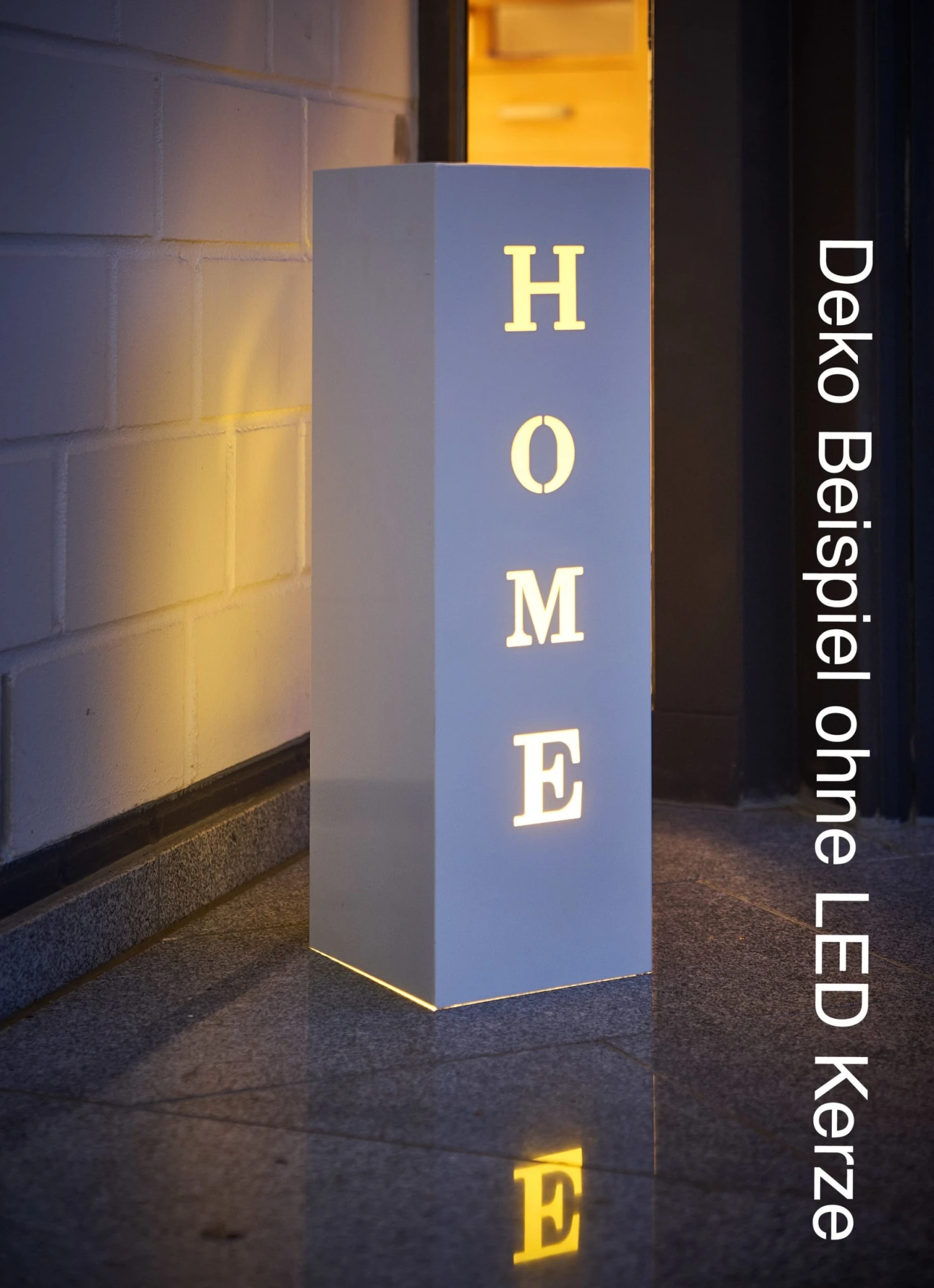 – Durch eine LED Kerze (separat erhältlich) kann die Dekosäule zusätzlich erleuchtet und zum Windlicht ergänzt werden