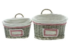 grau gekalkte Weide, schön geflochten, herausnehmbarer Stoffeinsatz, beige mit rot/weißem Karorand, passendes Textilpatch