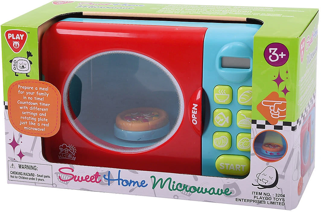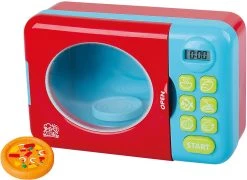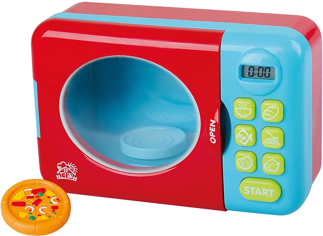 Mit dieser Mikrowelle können Kinder spielerisch erste kleine Gerichte kreieren. Durch die detailgetreue Nachbildung können Kinder ihre Eltern beim Kochen nachahmen. Die Mikrowelle kann hierzu geöffnet werden, die Uhrzeit gestellt werden, sowie diverse Knöpfe genutzt werden.