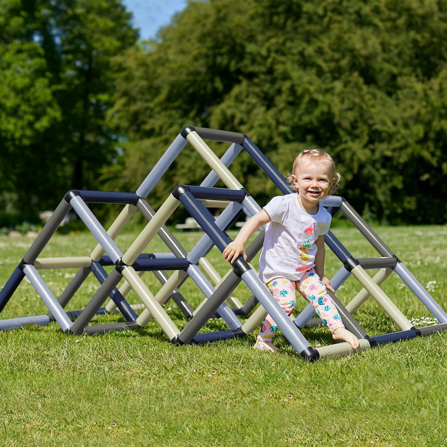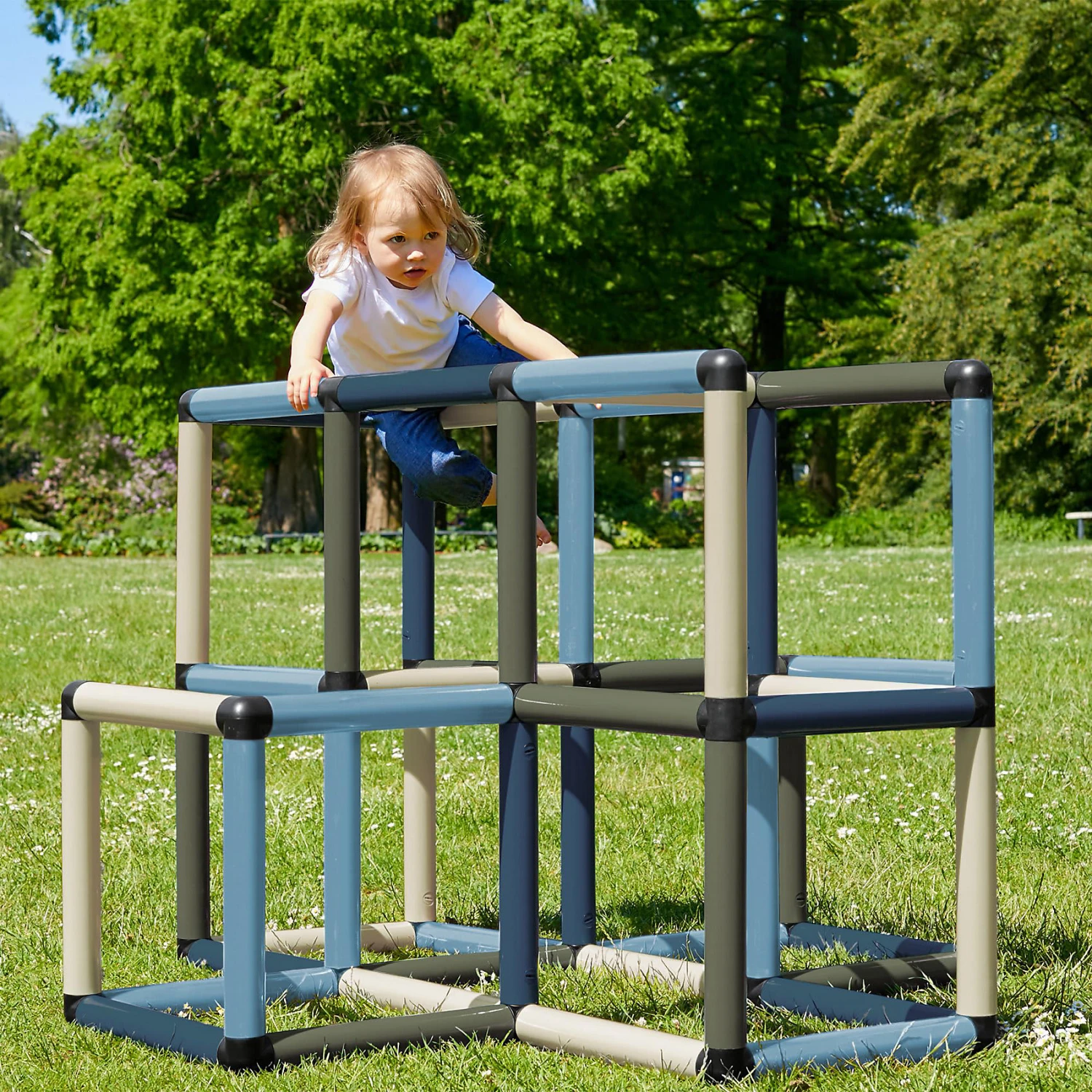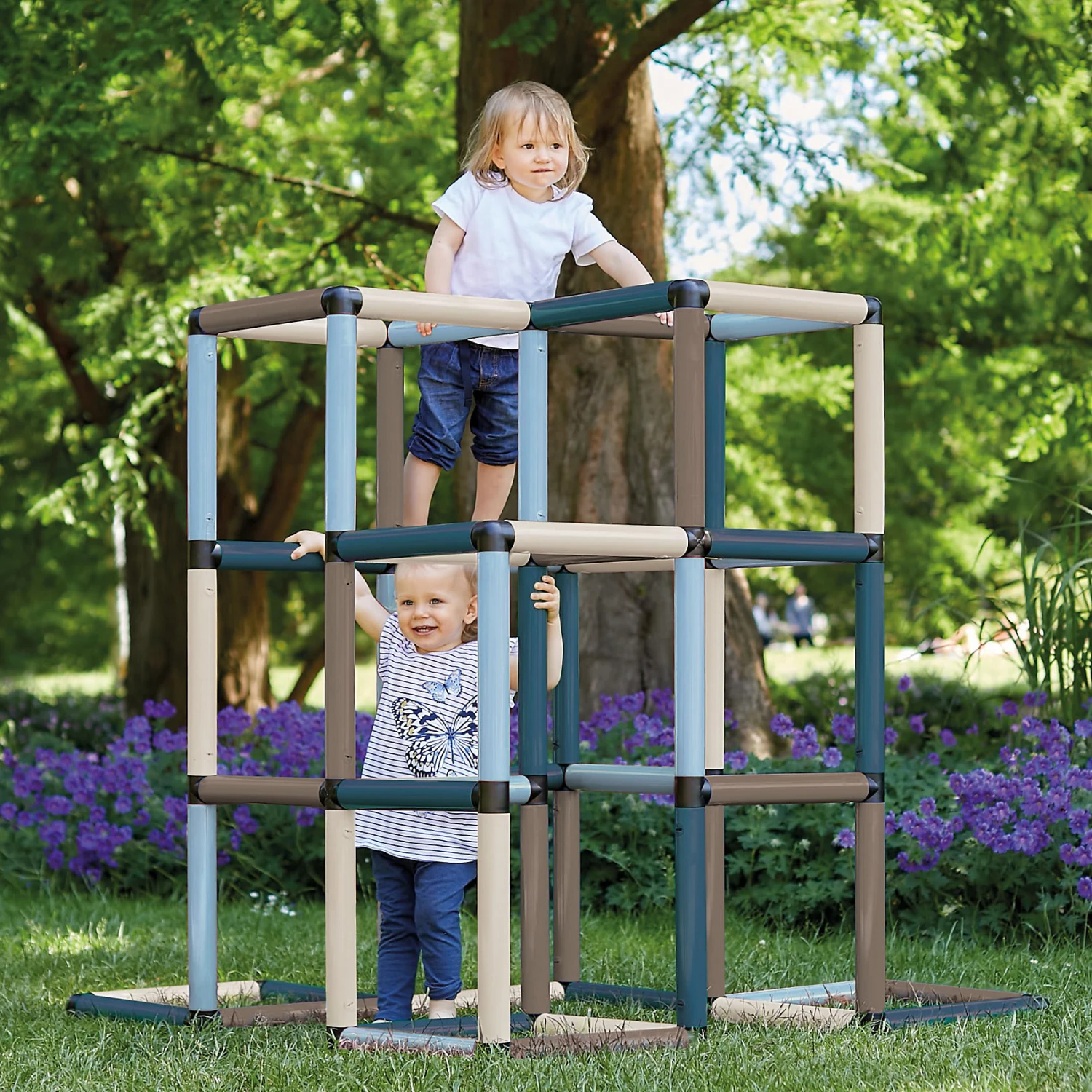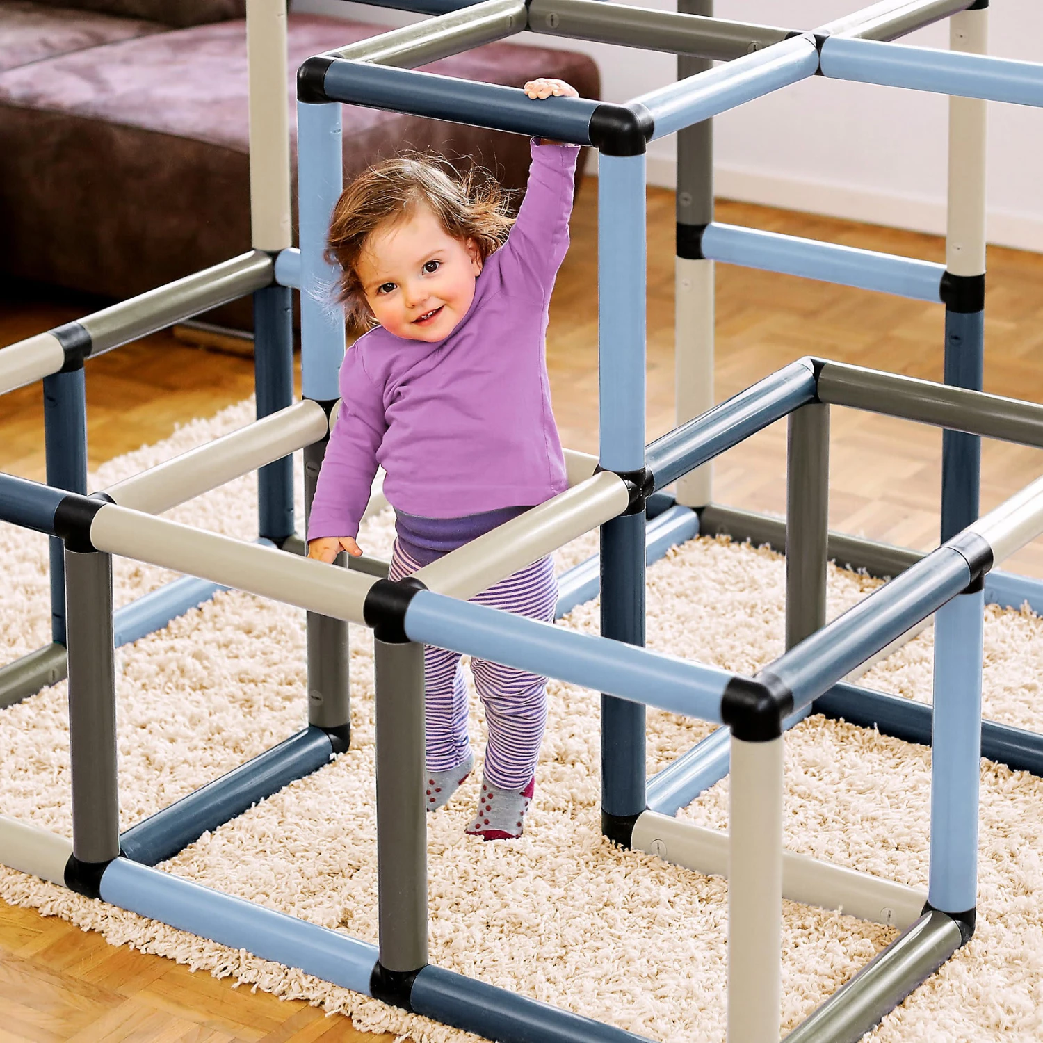 Die Quadro Kletterpyramide “Home” besteht aus zahlreichen Modulen, die beliebig zusammengesetzt werden können. So können schon kleine Kinder, die gerade das Laufen gelernt haben, mit einer flachen Konstruktion ihre Koordination trainieren. Mit zunehmendem Alter können immer anspruchsvollere Klettervarianten ausprobiert werden. So hält die Pyramide immer wieder neuen Kletterspaß bereit!