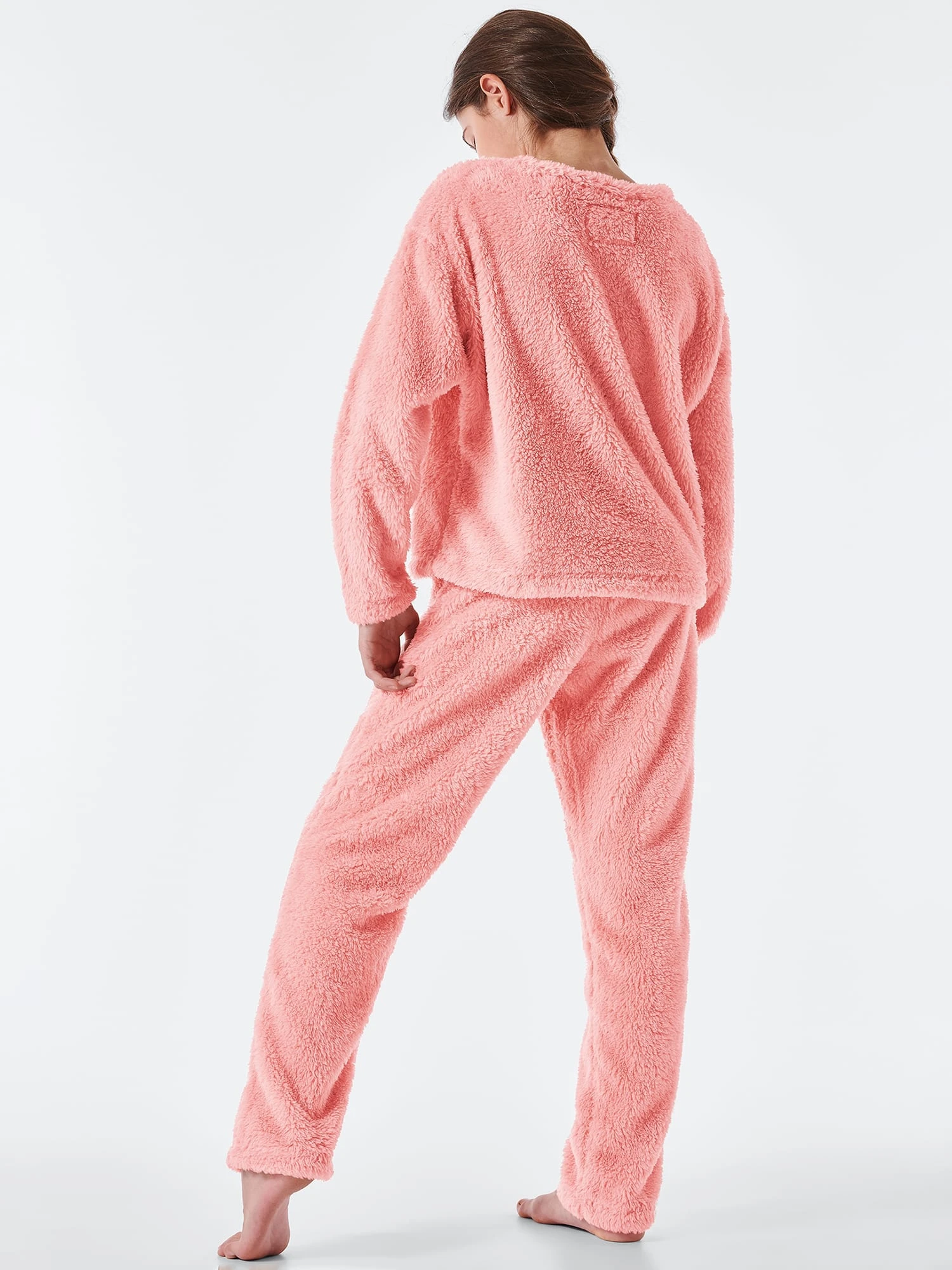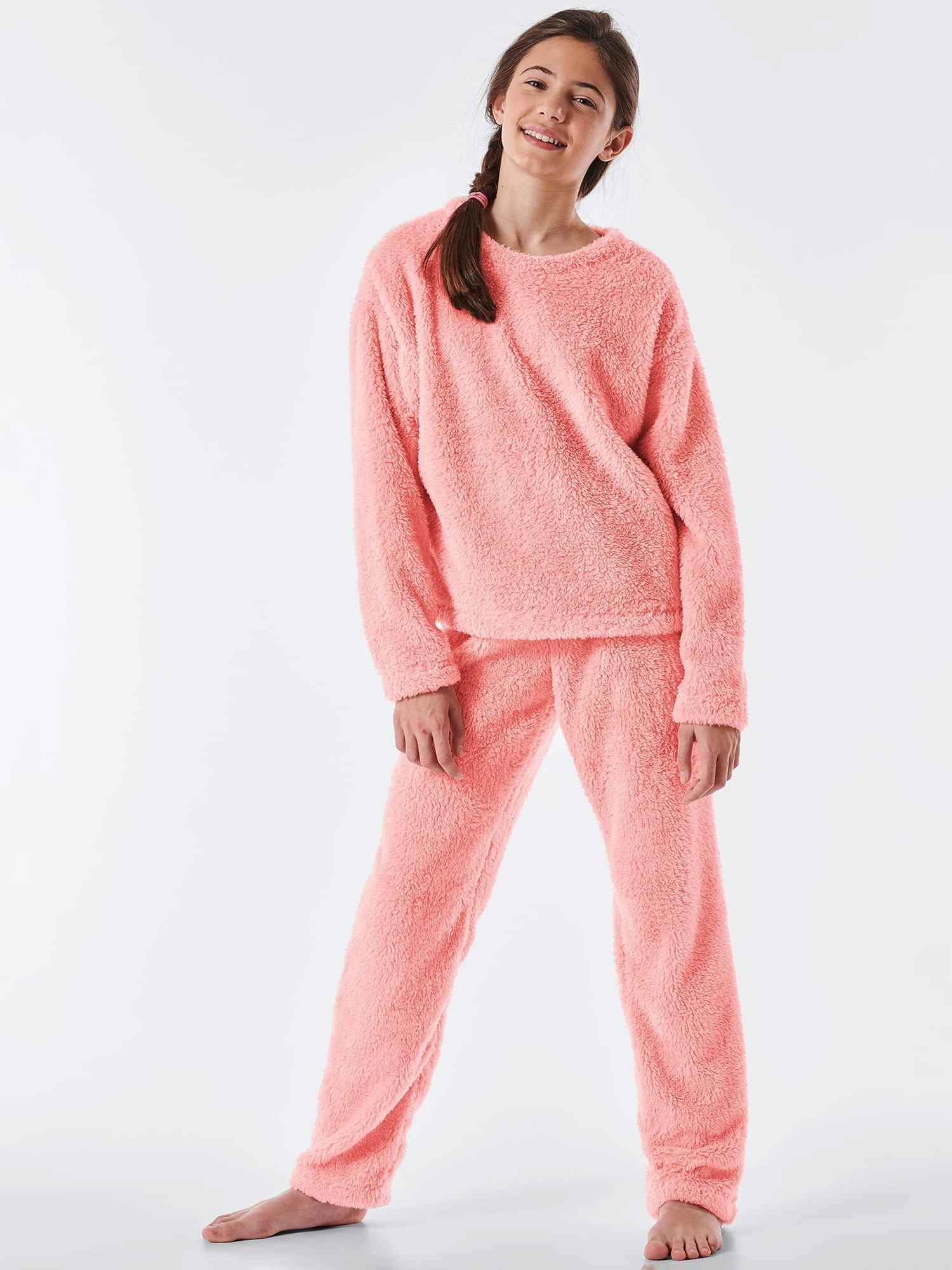 Jetzt wird’s kuschelig: Dieser lange Mädchen-Schlafanzug in unifarbenem Rosé sieht cool aus und ist dank weichem, warmen Fleece wunderbar bequem. Durch die überschnittene Schulterpartie und den Rundhalsausschnitt wirkt der Look besonders lässig. Die lange Schlafhose sitzt mit dem Bund zudem jederzeit perfekt. Ein echtes Lieblingsteil in bester SCHIESSER-Qualität!