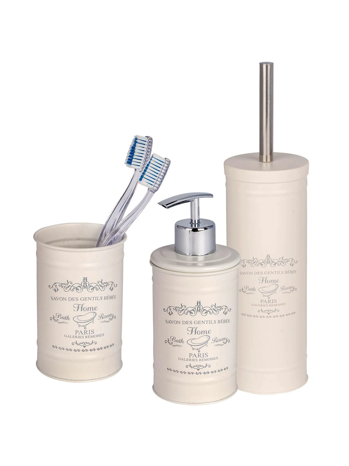 – Bestehend aus Seifenspender, WC-Garnitur, Zahnputzbecher