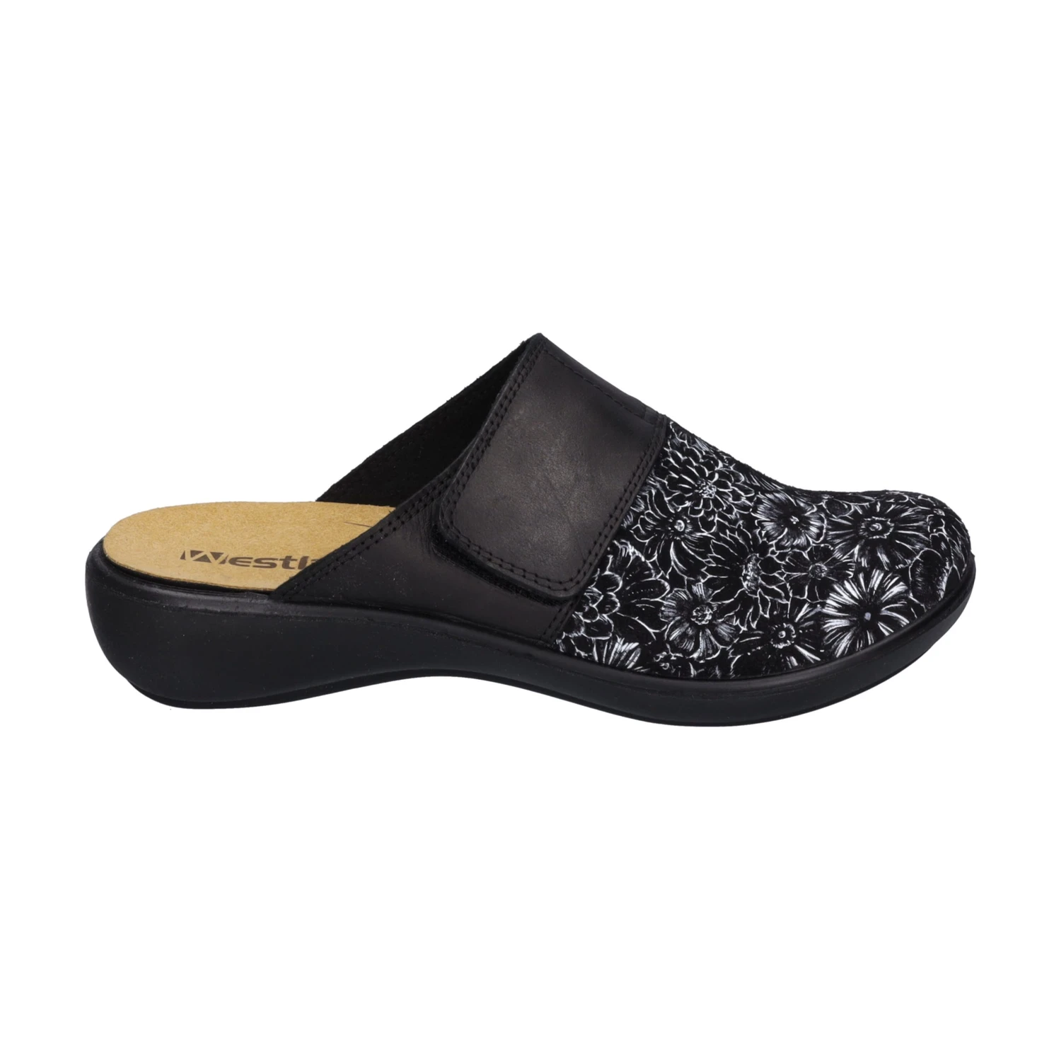 Der bequeme Damen-Hausschuh der Marke Westland aus Leder + Textil wird von nun an Ihr ständiger Begleiter sein. Die Decksohle aus Mikrofaser ist hochwertig verarbeitet und bietet optimalen Komfort. Der Schuh verfügt über eine Weite G 1/2, ideal für den ganz normalen Fuß. Die Schahlensohle hat eine Absatzhöhe von 3,5 cm. Die stabile Laufsohle ist aus PU, diese Sohle ist leicht, weich, flexibel und biegsam. Die geschlossene Schuhspitze macht den Schuh elegant am Fuß. Der Schuh ist perfekt geeignet fürs ganztägige Tragen, da Tragegefühl, Komfort und Verarbeitung so ausgerichtet sind, dass Sie den Schuh den ganzen Tag über ohne Probleme tragen können.